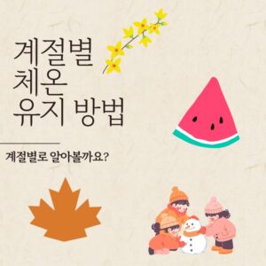 봄 가을에는 일교차가 커 신체가 온도 변화에 적응하느라 면역력이 떨어지기 쉬운 시기입니다. 이런 때는 레이어드 룩이나 스카프를 활용하여 체감 온도를 올려줍니다. 여름에는 에어컨 사용으로 실내외 온도 차가 커지면서 발생할 수 있는 냉방병 예방과 충분한 수분 보충으로 체온이 급격하게 변하지 않게 하는게 핵심입니다. 겨울에는 기초 대사량이 떨어지고 혈관이 수축하여 심혈관 질환 위험이 높아지는 계절이기 때문에 내복 착용과 실내 온습도를 잘 유지해 주어 호흡기 점막이 마르지 않게 관리해 주는 것을 권장합니다.